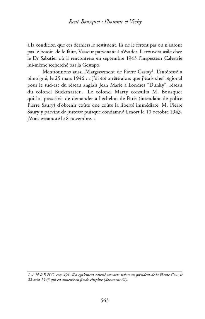 <L'attitude de René Bousquet face à la résistance et à l'action extérieure>