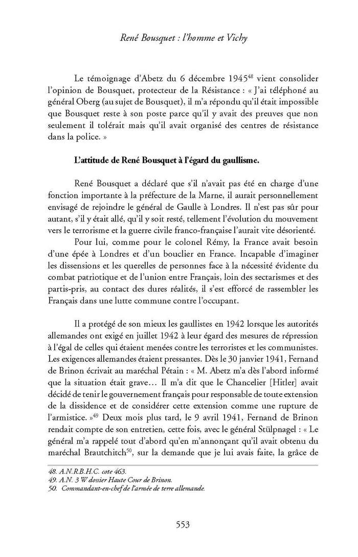 <L'attitude de René Bousquet face à la résistance et à l'action extérieure>