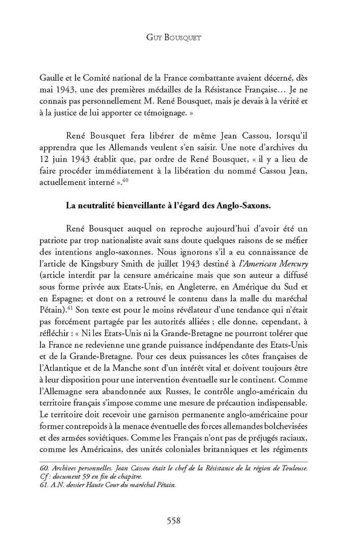 <L'attitude de René Bousquet face à la résistance et à l'action extérieure>