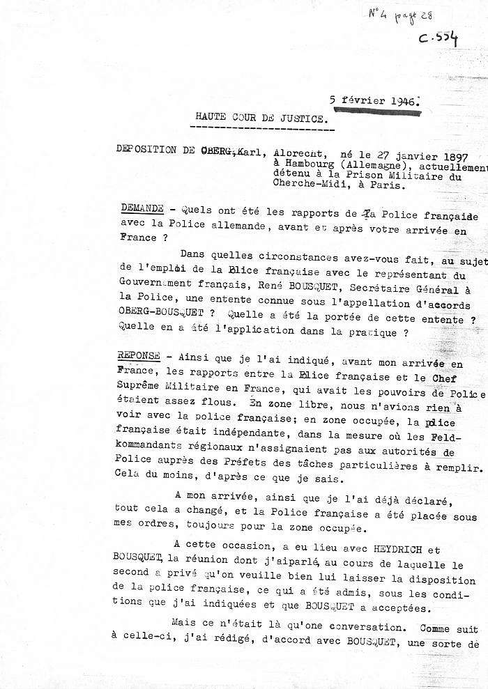 Témoignages français et allemands sur l'attitude constante de René Bousquet