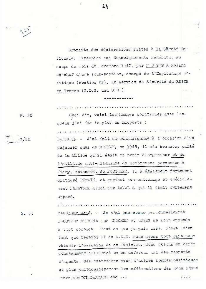 Témoignages français et allemands sur l'attitude constante de René Bousquet