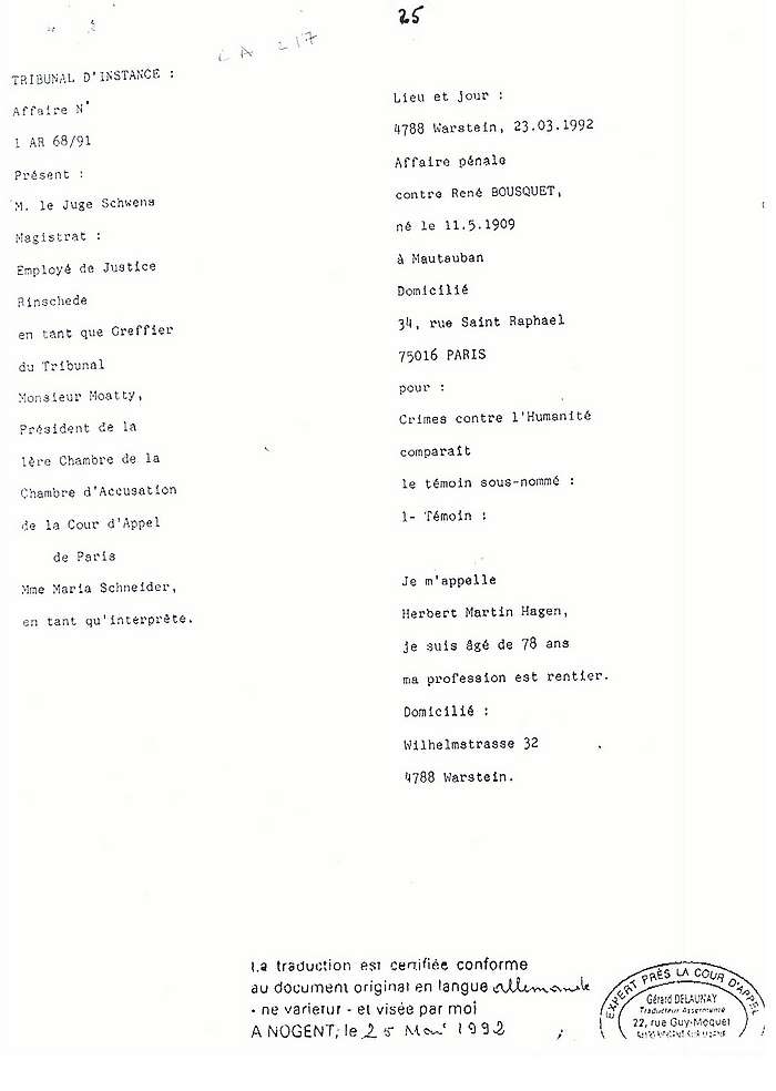 Témoignages français et allemands sur l'attitude constante de René Bousquet