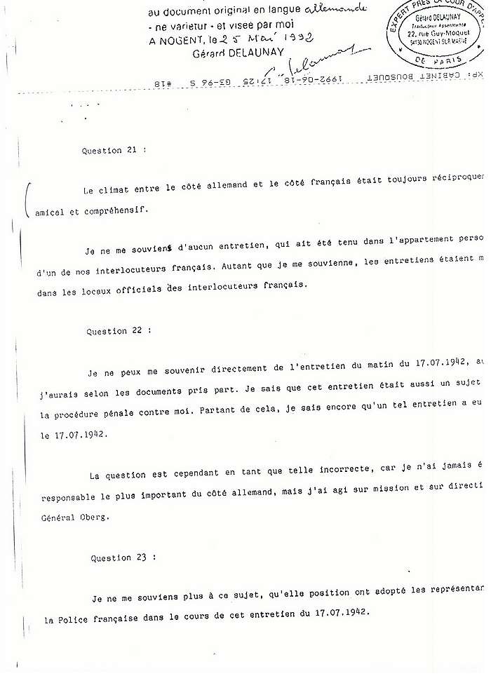 Témoignages français et allemands sur l'attitude constante de René Bousquet
